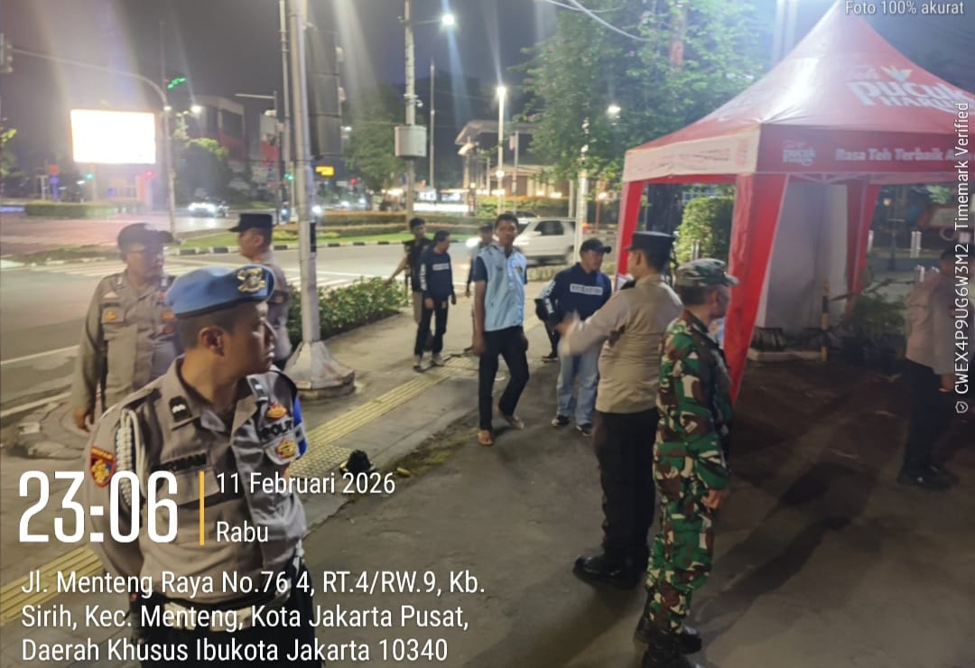 Jakarta Pusat — Dalam rangka menciptakan situasi keamanan dan ketertiban masyarakat yang kondusif menjelang bulan suci Ramadhan, Polsek Metro Menteng kembali menggelar patroli terpadu tiga pilar bersama Satgas Gen Z Jaga Jakarta. Kegiatan ini difokuskan di kawasan TL Kantor Pos Cikini, Jalan Cikini Raya, Menteng, Jakarta Pusat, yang dinilai memiliki potensi kerawanan pada malam hari. Kamis (12/2/2026)