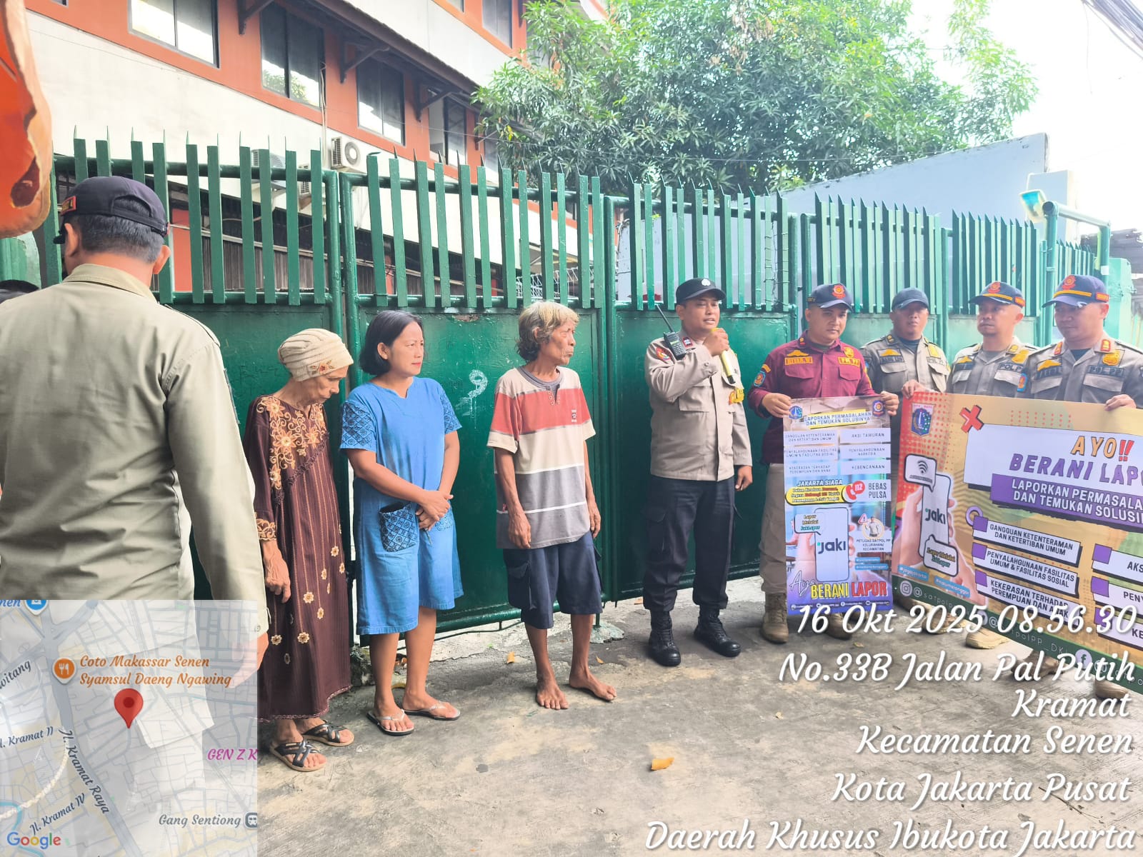Kegiatan yang berlangsung sejak pukul 09.00 WIB ini digelar di Pasar Gaplok dan Jalan Kembang Pacar, Kelurahan Kramat, Kecamatan Senen, Jakarta Pusat. Turut hadir Bhabinkamtibmas Kramat Aiptu Endro Cahyono, Babinsa Kramat, dan petugas Satpol PP.