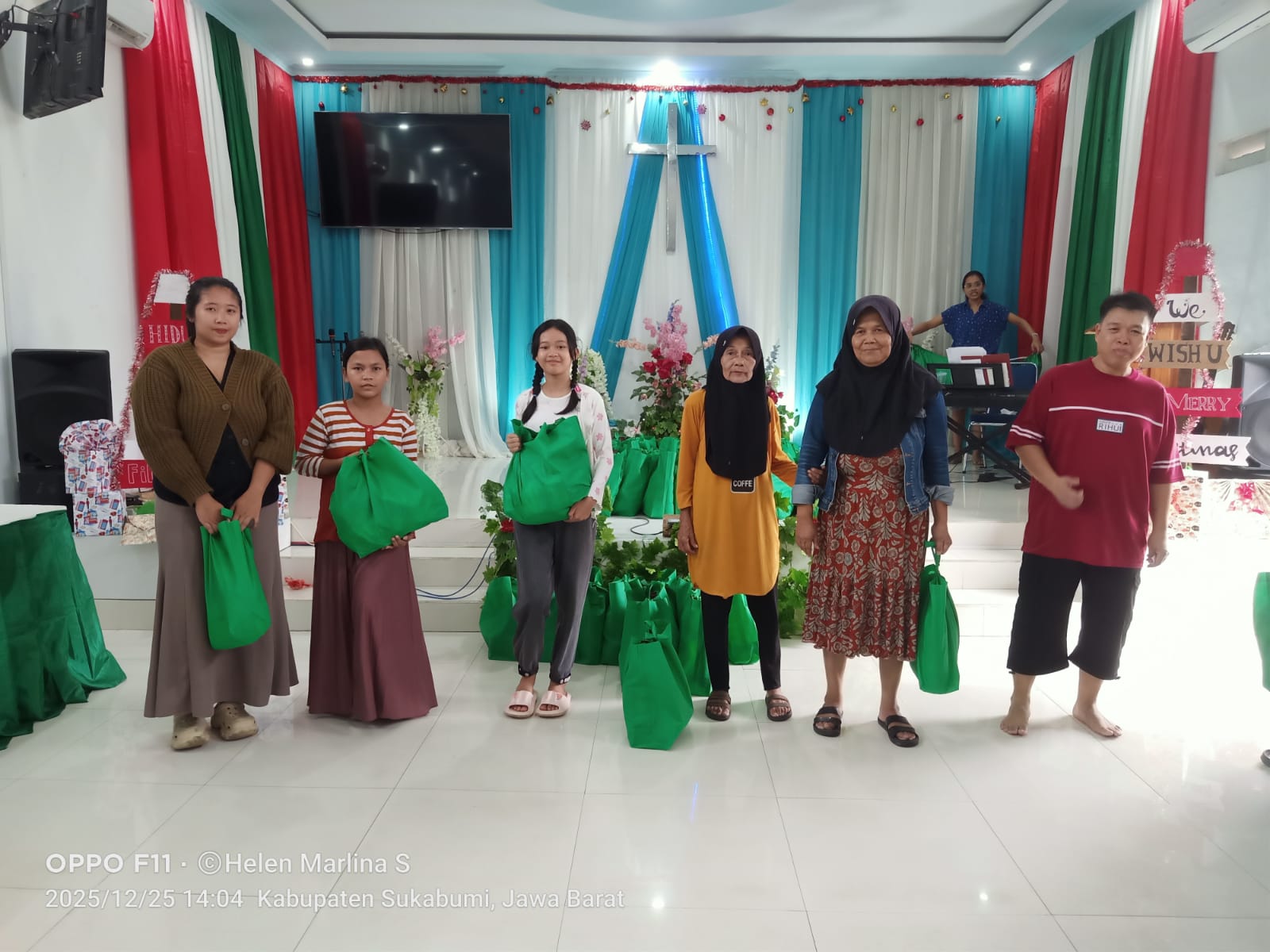 Gereja Baptis Indonesia (GBI) Baitani Cabang Cibadak, Kecamatan Cibadak, Kabupaten Sukabumi menggelar perayaan Natal dan Tahun Baru 2025/2026 yang dirangkaikan dengan kegiatan tali kasih kepada warga sekitar, Rabu (24/12/2025).
