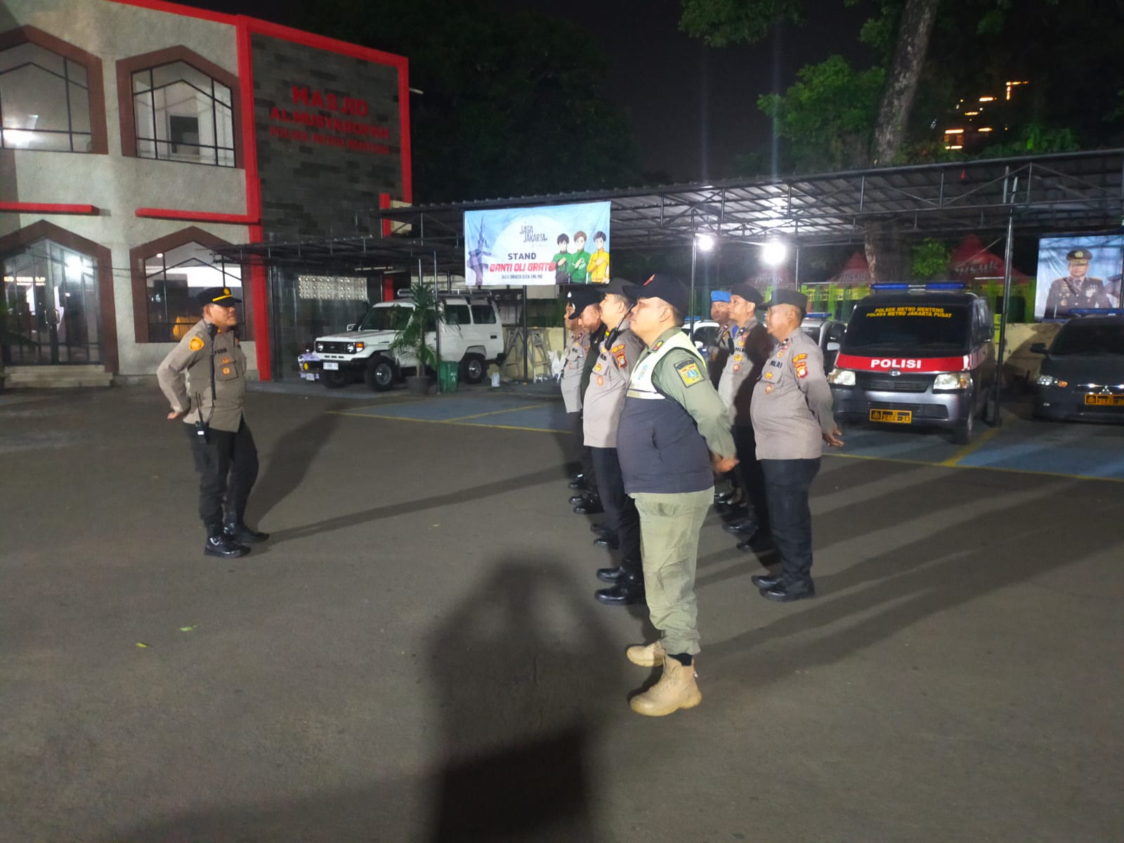 Jakarta Pusat — Dalam rangka menjaga stabilitas keamanan dan ketertiban masyarakat di wilayah hukum Polsek Metro Menteng, jajaran tiga pilar Kecamatan Menteng yang terdiri dari unsur Polri, TNI, dan Satpol PP melaksanakan apel patroli cipta kondisi “Jaga Jakarta” pada Rabu malam (8/10/2025). Kegiatan ini dipimpin oleh Padal Iptu Sopan Febriyanto dan diikuti oleh personel gabungan dari berbagai unsur keamanan wilayah.
