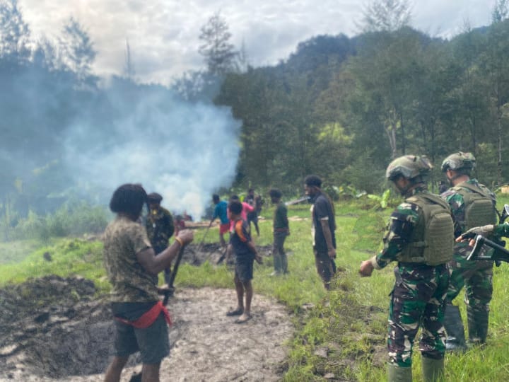 Di tengah dinginnya udara pegunungan Papua, hangat terasa kebersamaan antara prajurit TNI dan warga Kampung Mayuberi, Distrik Ilaga Utara, (25/7/2025), dalam momen penuh makna. Satgas Yonif 700/WYC melalui Pos Mayuberi melaksanakan kegiatan Binter terbatas dengan menghadiri undangan bakar batu dari Kepala Kampung Mayuberi, Bapak Anis, sebagai bentuk penghormatan atas meninggalnya salah satu anggota keluarga beliau.