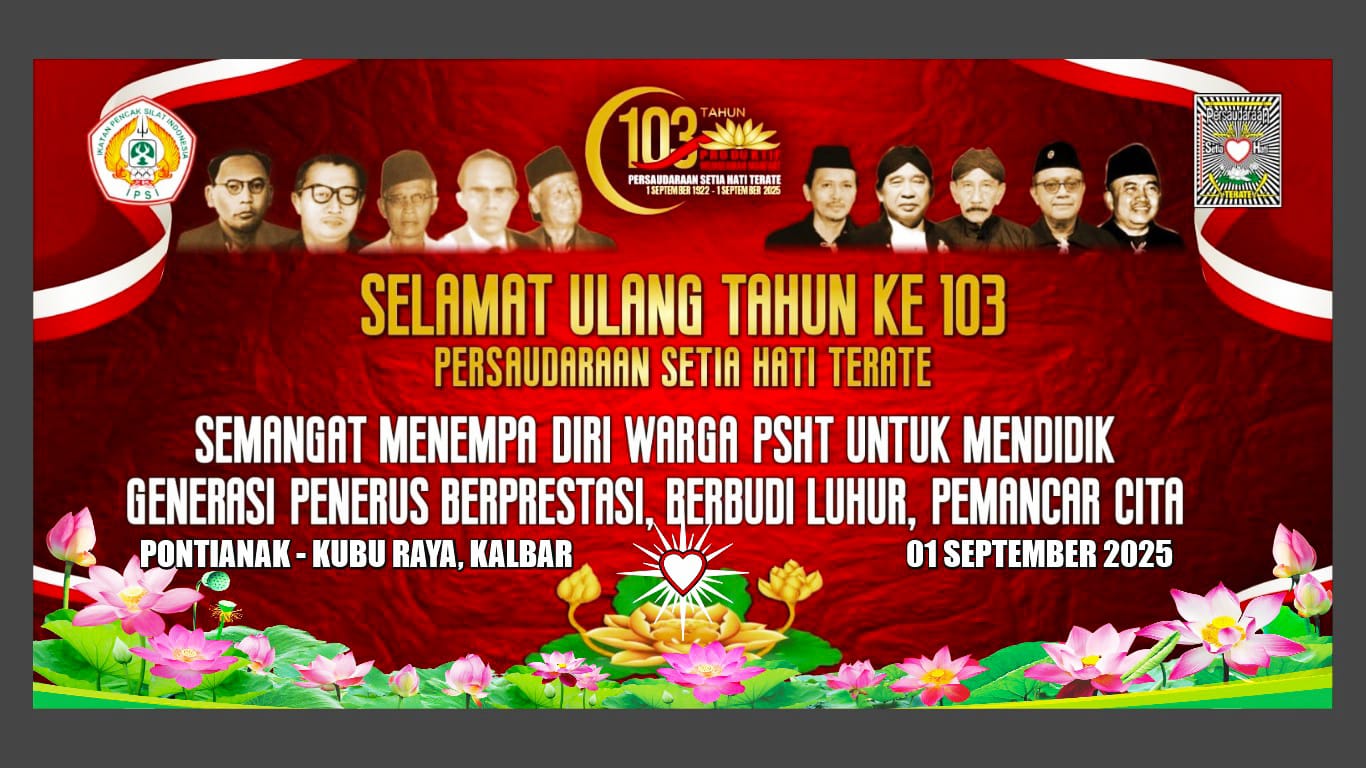 Persaudaraan Setia Hati Terate (PSHT) Cabang Pontianak gelar peringatan hari jadi ke 103 PSHT, serta Syukuran dan Doa Bersama di aula Ditsamapta jalan subarkah pontianak.