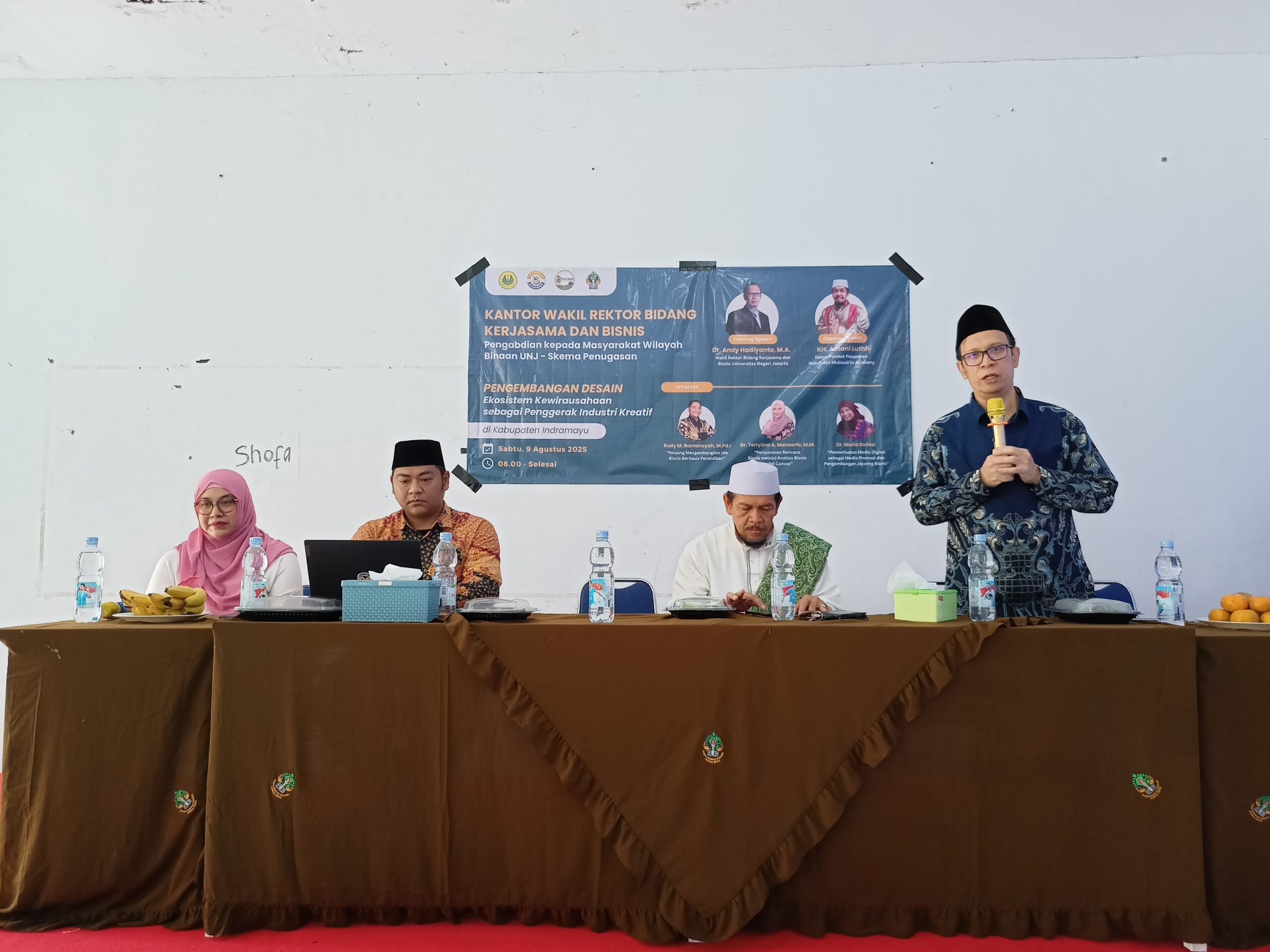 Pengabdian kepada masyarakat (P2M) Universitas Negeri Jakarta (UNJ) kembali hadir di Kabupaten Indramayu, kali ini menyasar Pesantren Nahdlatul Mubtadi’in Al Islami yang terletak di kawasan pedesaan namun memiliki visi besar untuk mencetak santri yang mandiri. Kegiatan ini mengusung tema Pengembangan Desain Ekosistem Kewirausahaan sebagai Penggerak Industri Kreatif dan diikuti oleh para guru, pengurus organisasi santri, serta santri senior. Program ini menjadi langkah konkret UNJ dalam memperkuat peran pesantren sebagai motor penggerak ekonomi kreatif di daerah.