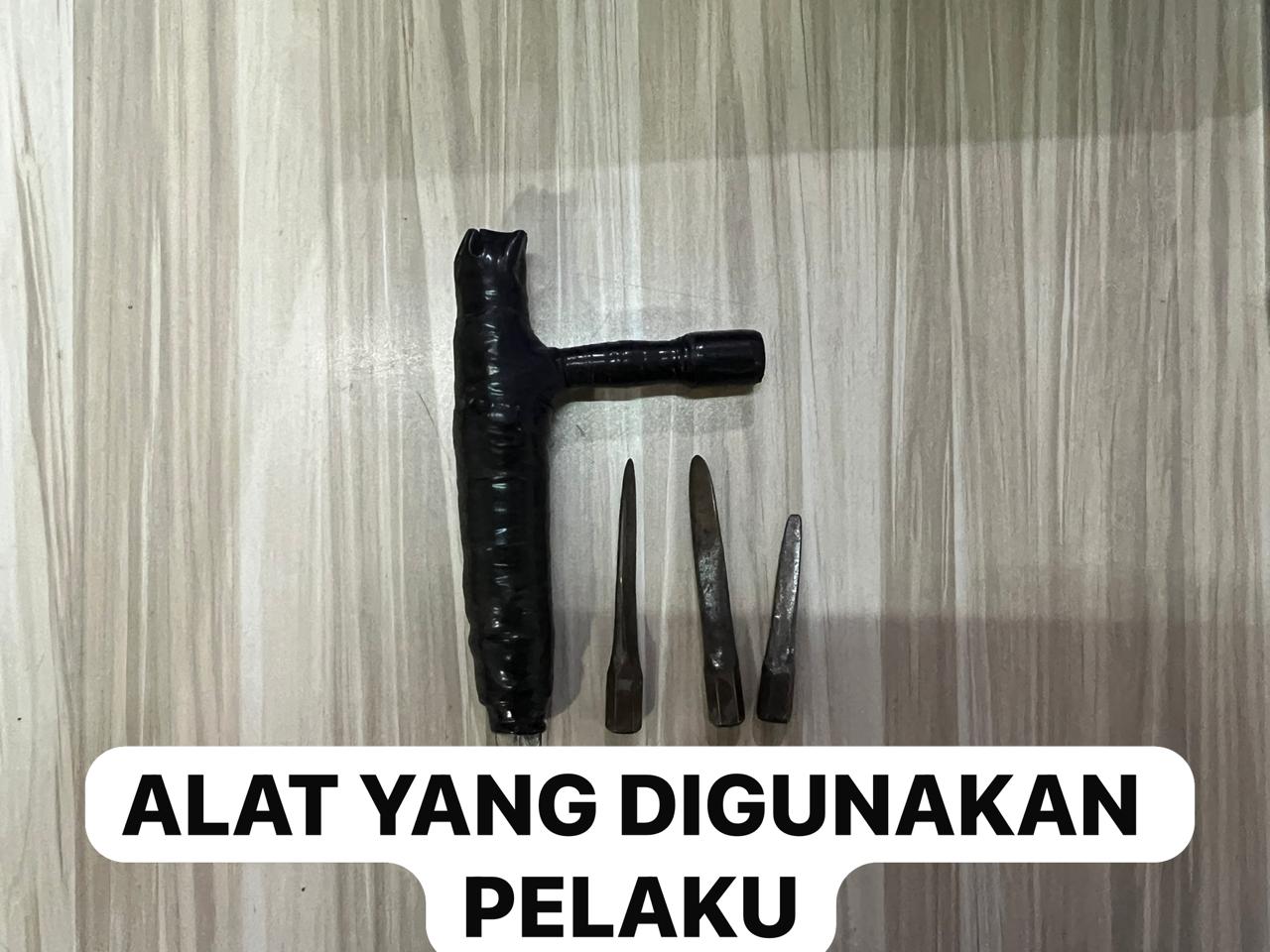 Dalam penangkapan tersebut, polisi mengamankan sejumlah barang bukti, yakni satu unit sepeda motor Honda Beat Street, dua unit handphone milik pelaku, tiga buah mata kunci letter T, satu buah gagang letter T, satu pucuk senjata api rakitan dan 5 butir peluru, rekaman CCTV, serta pakaian yang digunakan pelaku saat beraksi.