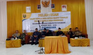 Mabesbharindo.com Jateng Batang-Forkopimcam Bandar menyampaikan imbauan Kamtibmas pada acara penyampaian visi dan misi calon Kepala Desa Sidayu pada tahap kampanye.